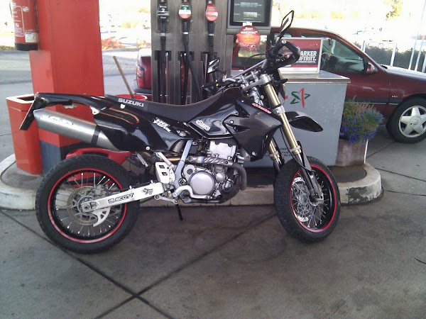 Wie auch immer ... Ende letzten Jahres hab ich mir endlich n Mopped zugelegt. Die Wahl fiel dann auf ne DRZ 400 Sm (welch Überraschung :mrgreen: ), da ich was zum Spass haben, mit geilem Handling haben wollte, was nicht alle 20 Betriebsstunden zum Service muss.