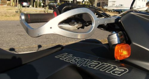 Zu 2.: Der eigentliche Zweck von Handprotektoren ist der, daß beim Endurofahren z.B. in bewaldetem Gelände verhindert werden soll, daß durch Zweige, Äste oder Steine versehentlich Brems- oder Kupplungshebel betätigt werden, was bei Speed den Abflug bedeuten kann. Im Motocross verhindern sie zudem, daß vom Vordermann aufgewirbelter Dreck und Steine die Hände verletzen. Das man damit vollends verhindern kann, daß Armaturen beim Sturz auf Asphalt nicht brechen oder beschädigt werden - ist das so?. Das kann man wohl eher weitestgehend verhindern, indem man die Armaturen nicht bombenfest am Lenker anknallt, so daß sie sich bei einem Sturz nach oben wegdrehen können. ;-)