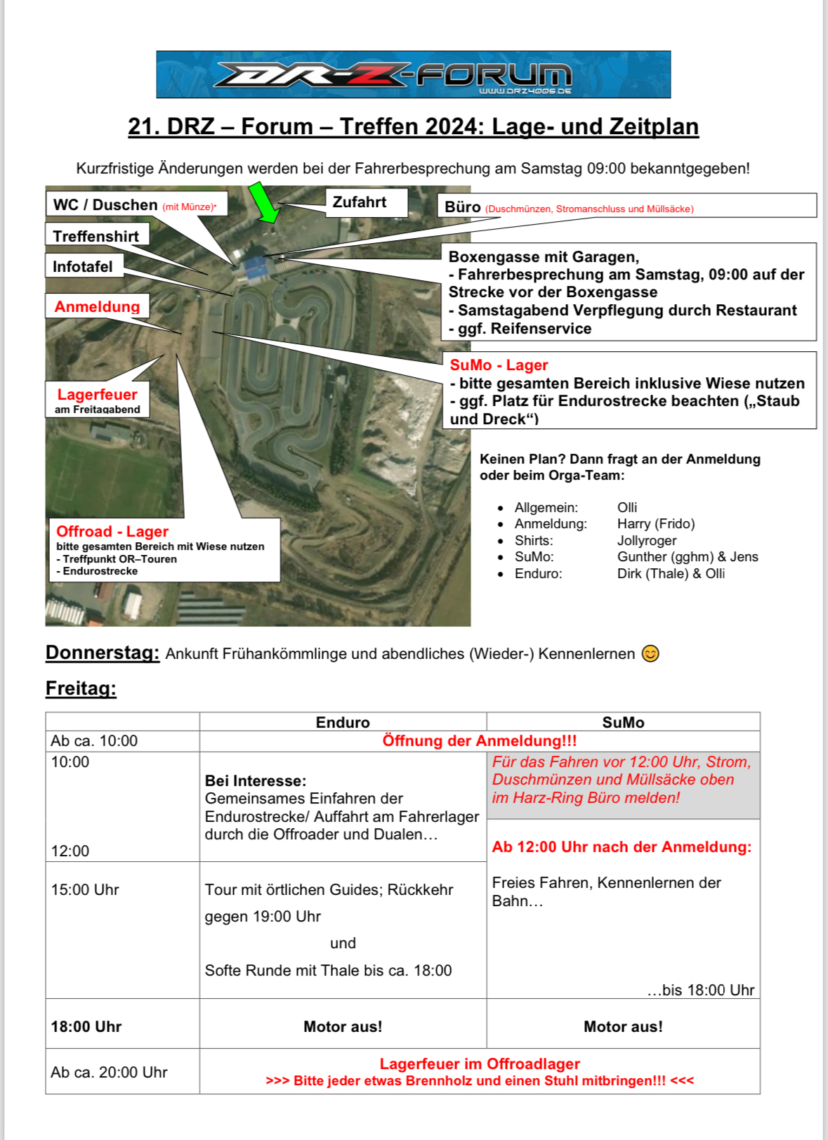 Bitte die Änderung beachten, dass die Samstagsparty etwas später startet, damit alle in Ruhe von der Offroadtour zurückkommen und die Supermoto Fahrer sich ohne Stress umziehen und duschen gehen können.