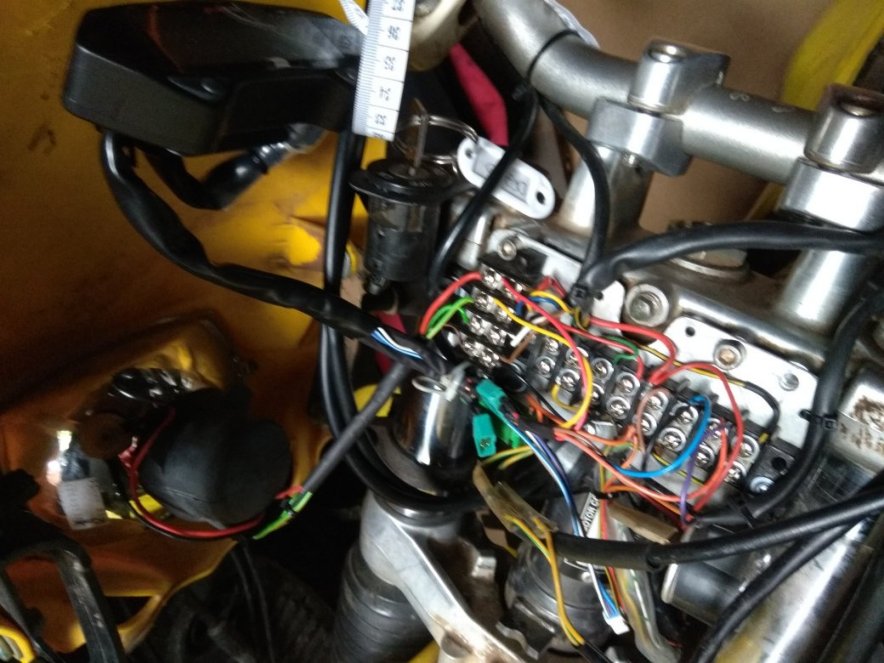Bremslichtkabel ist in meinem "StVO-nachrüst-Kabelbaum" gelb, da klemm ich den Schalter dazwischen, irgendwo oben wo der Rahmenzug ankommt. Allerdings laufen die Kabel zwangsweise zumindest nahe am Auspuffrohr... unschön. D.h. ich muss sie auf der Rückseite vom Rahmenrohr mit Kabelbindern gut fixieren ...Mist ist nur das man da schon mal gegenkommen kann.