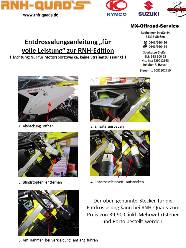 Hallo, hier ist mal eine schöne Anleitung zum richtigen Entdrosseln der RMX 450.