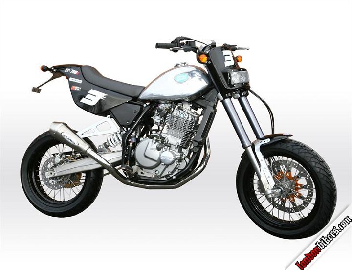 Hat 55 PS, trocken 120 Kg, 710ccm (Basis ist ein Suzuki DR650 Motor)