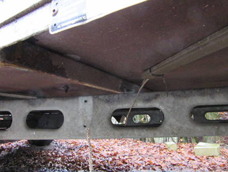 Die Querstreben liegen auf dem alten Wohnwagenfahrgestell auf und sind damit verschraubt das passt