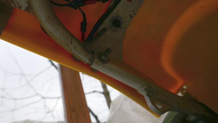 Evtl. wurde der Heckrahmen bei einem Sturz verbogen, abgeschnitten, gerichtet und mit dem Zwischenrohr zusammengesetzt.