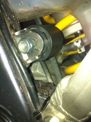 Dateikommentar: Untere Kettenrolle Tenere. Gut zu erkennen Distanzring und Unterlegscheiben^^ Vorsicht Pfusch!